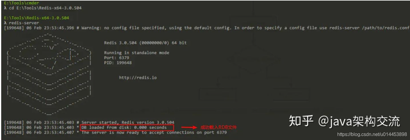 然后,Redis载入RDB文件并没有专门的命令,而是在Redis服务器启动时自动执行的。