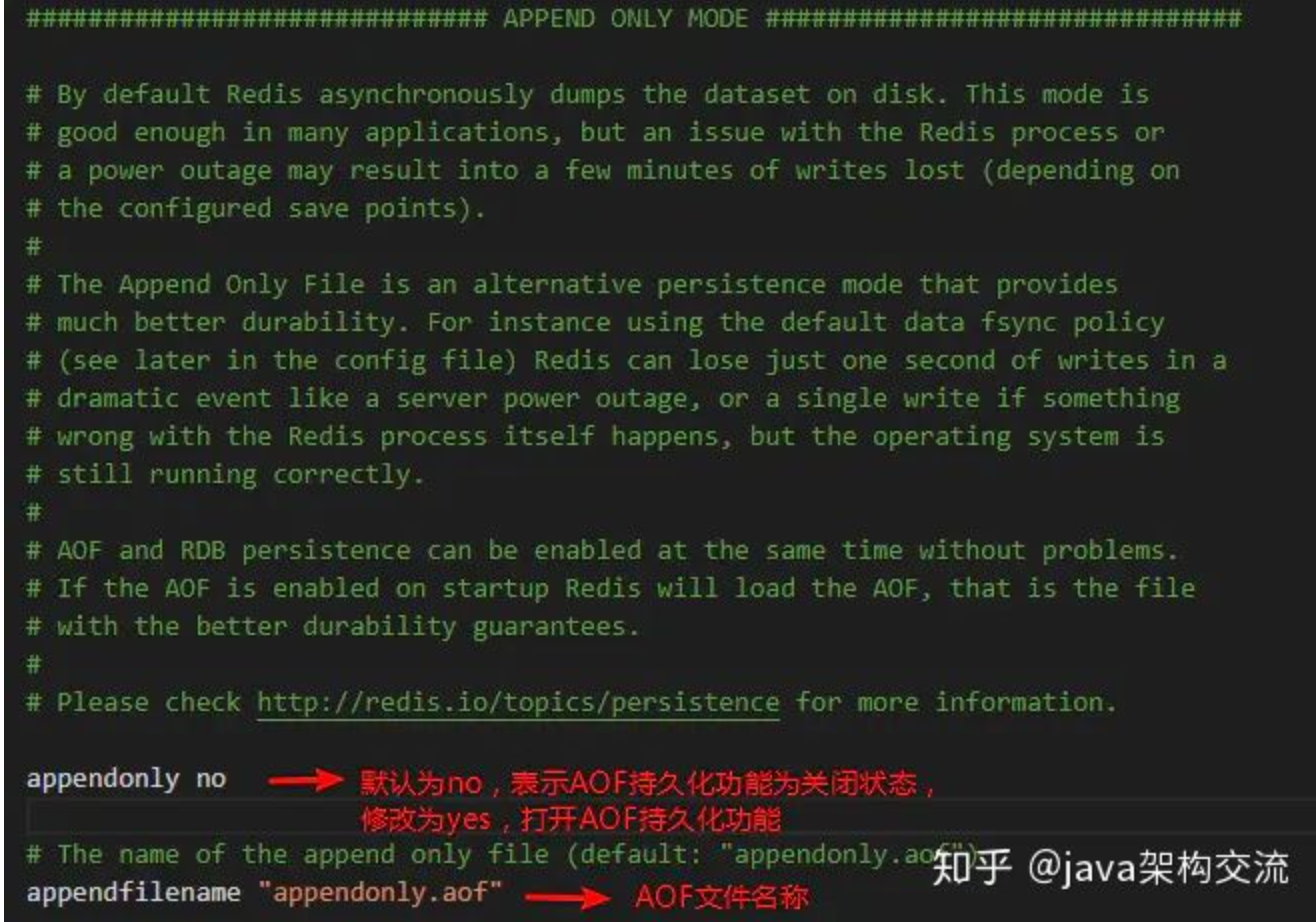 默认情况下,AOF持久化功能是关闭的,如果想要打开,可以修改下图所示的配置: