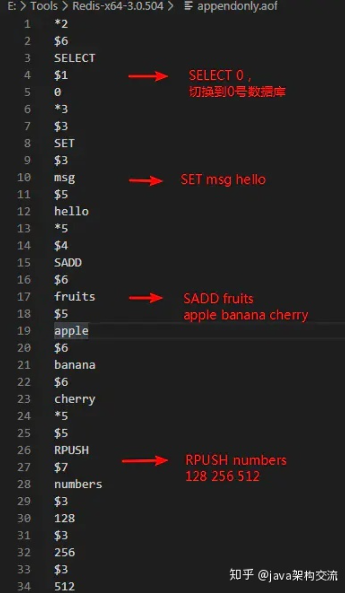 打开该文件,我们可以看到上面执行的3个写命令都存储在该文件中: