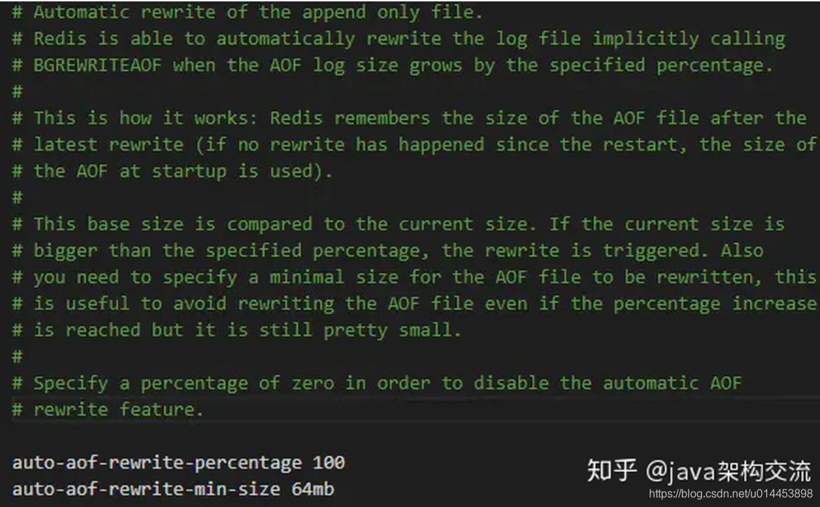 除了手动执行外,Redis还提供了2个配置项用来自动触发 BGREWRITEAOF 命令: